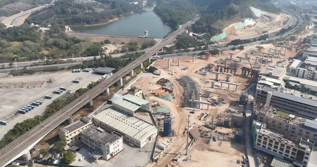环莞三期东段常平岗梓片区新增路网完善工程建设正有序推进,当前正在开展主线桥梁施工以及右辅道路基施工,项目主线将与环莞三期东段主线同步建成通车。